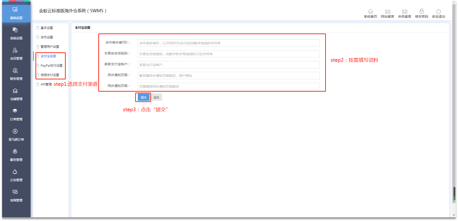 ·系统默认第三方支付渠道为支付宝、PayPal、微信,管理员可按实际要求前往【基础设置】操作开通。